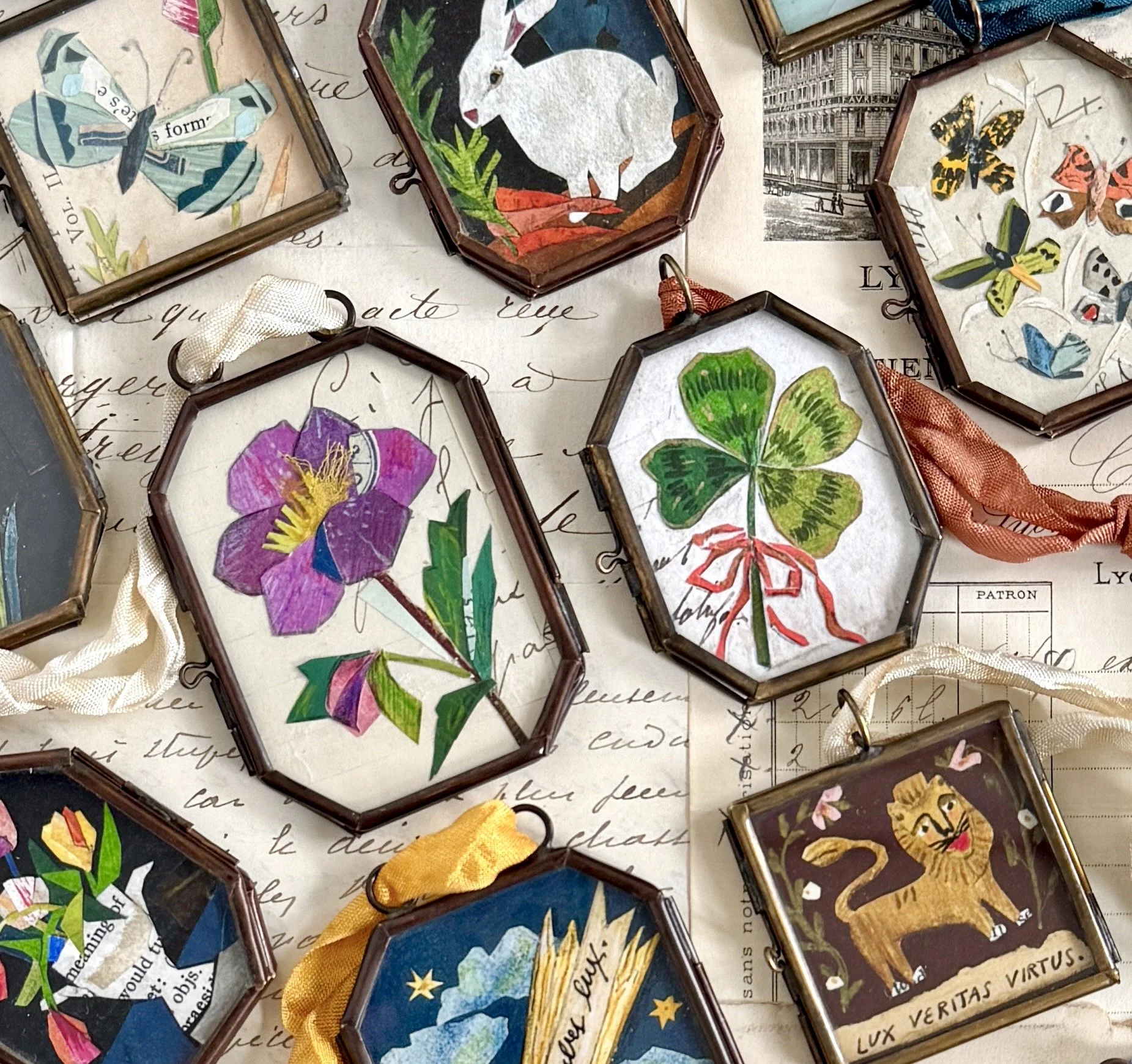 Singular collage works by Brandie Stonge. Poetically illuminating with hand-painted cut papers and antique ephemera.
